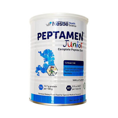 Peptamen Junior là sản phẩm dinh dưỡng y học đặc trị cho trẻ em có hội chứng ruột ngắn, sau hậu phẫu, tiêu chảy, trẻ kém tiêu hóa, trẻ kém hấp thụ, viêm ruột, viêm tụy, ung thư… Sản phẩm giúp tạo điều kiện hấp thu các chất dinh dưỡng thiết yếu ở bệnh nhân bị giảm khả năng hấp thụ, giúp trẻ phục hồi nhanh chóng sau khi mắc các bệnh về tiêu hóa.